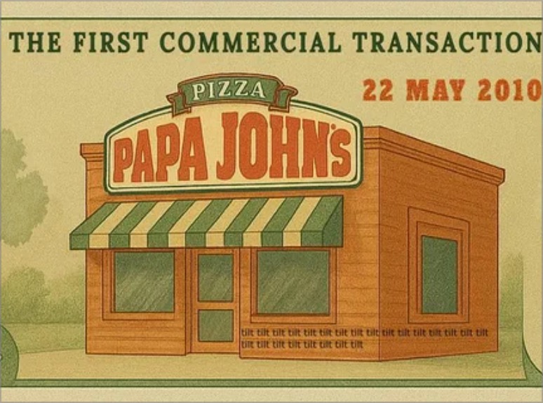 Bitcoin Price: $0.04Celebrates the very first 'real world' purchase using bitcoin, where Laszlo Hanyecz bought two pizzas for 10,000 bitcoins. This transaction proved Bitcoin could function as a medium of exchange, not just a technological curiosity.